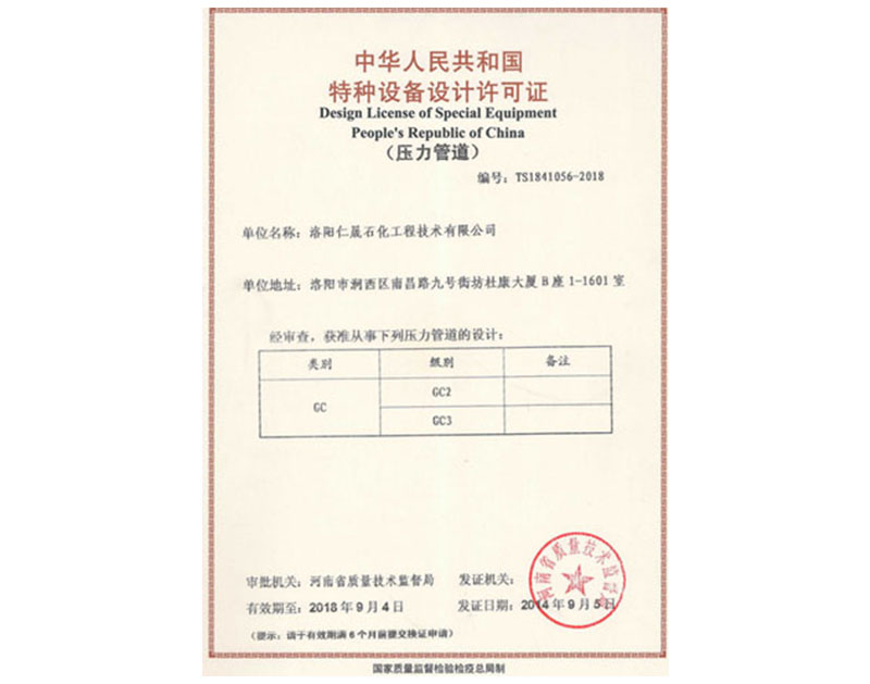 壓力管道設(shè)計(jì)許可證